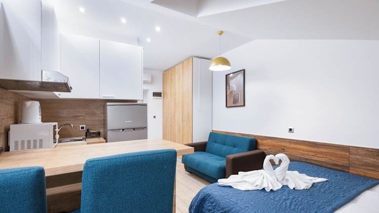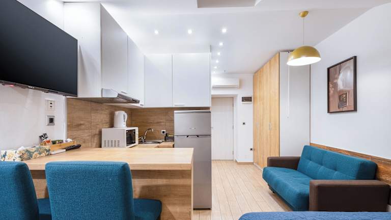 Die Wohneinheiten verfügen über eine voll ausgestattete Küche, die einen Kühlschrank, eine Mikrowelle, eine Herdplatte und einen Wasserkocher umfasst. Jedes Zimmer bietet zudem einen Esstisch, einen Flachbild-TV mit Satellitenkanälen sowie ein eigenes Badezimmer mit Dusche, kostenlosen Pflegeprodukten und einem Haartrockner.