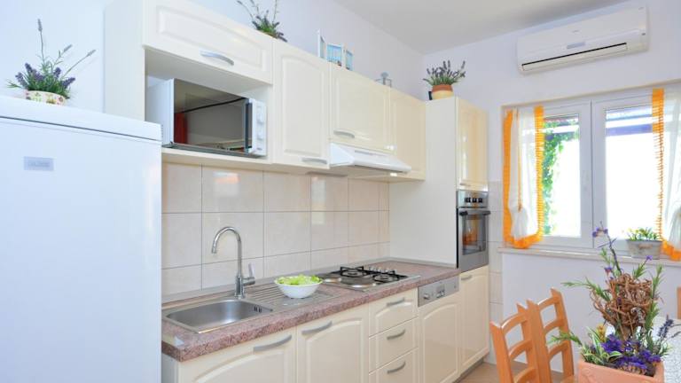 Die Apartments im Punta Milna sind zur Selbstverpflegung ausgelegt. Sie verfügen über eine voll ausgestattete Küche oder Küchenzeile, in der Sie Ihre eigenen Mahlzeiten zubereiten können. Alternativ können Sie auch die Grillmöglichkeiten auf der Gemeinschaftsterrasse nutzen. In der Nähe gibt es auch Restaurants, in denen Sie lokale Spezialitäten genießen können.