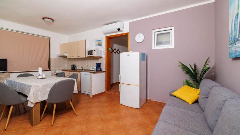 In den Apartments Renata haben Sie die Möglichkeit, Ihre eigenen Mahlzeiten zuzubereiten. Die Küche ist mit allen notwendigen Geräten ausgestattet. Wenn Sie jedoch lieber auswärts essen möchten, finden Sie in der Nähe verschiedene Restaurants und Cafés, in denen Sie lokale Spezialitäten genießen können.