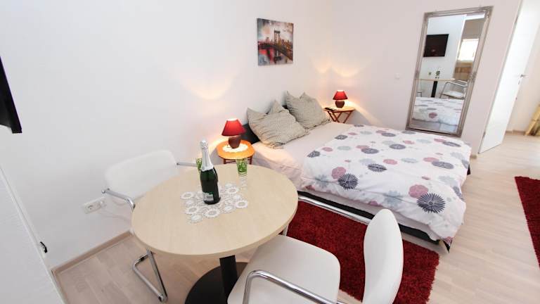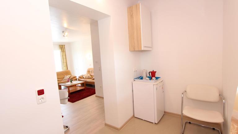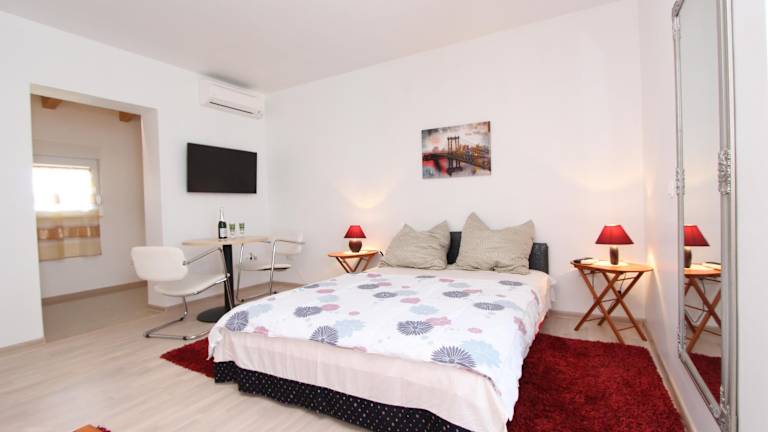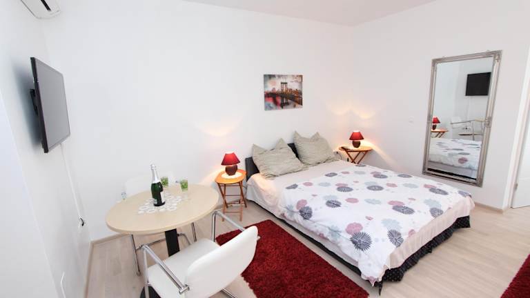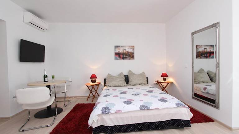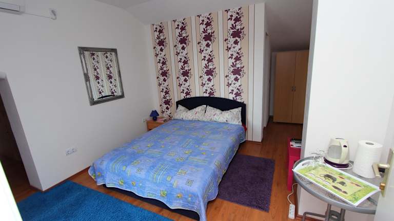 Die Rooms and Apartments Sally liegen nur 500 m von den beliebten Stränden Cuvi und Lone entfernt. Das Zentrum von Rovinj erreichen Sie nach nur 1 km. In der unmittelbaren Umgebung finden Sie ein Lebensmittelgeschäft sowie verschiedene Freizeiteinrichtungen wie einen Basketballplatz, einen Skateboard-Park, ein Tenniszentrum und eine Bowlingbahn. Die Altstadt von Rovinj mit der Kirche der Heiligen Euphemia ist einen Besuch wert. Von dort aus können Sie auch die Inseln Sveta Katarina und Sveta Andrija besuchen, die sich direkt vor der Küste befinden. Der Park šuma Zlatni Rt ist nur 800 m entfernt. Der Hafen, der Rovinj mit Venedig verbindet, ist 1,5 km entfernt. Der Busbahnhof befindet sich in einer Entfernung von 1 km. Die Euphrasius-Basilika in Poreč erreichen Sie nach 34 km und der Flughafen Pula ist 37 km entfernt.