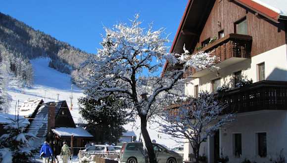 Die Apartments & Rooms Smučka befinden sich in Kranjska Gora, direkt an einer Skipiste. Die Lage ist ideal für Skifahrer, die gerne direkt vor der Tür auf die Piste gehen möchten. In der Umgebung gibt es auch viele Möglichkeiten für andere Aktivitäten wie Golf, Radfahren und Wandern. Der Flughafen Ljubljana Jože Pučnik liegt etwa 59 km entfernt.