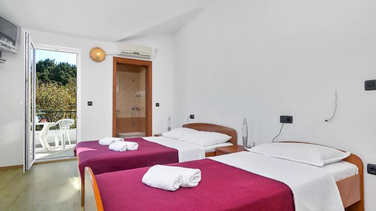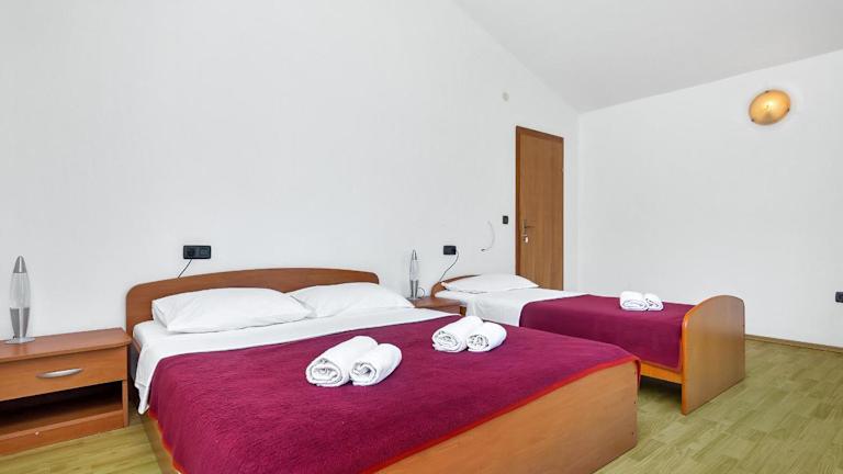 Das Apartments Rubin bietet Unterkünfte zur Selbstverpflegung und wird von einem privaten Gastgeber geführt. Es gibt verschiedene Unterkunftsarten, darunter Erdgeschoss-Apartments mit Terrasse sowie Zimmer in der ersten und zweiten Etage, die jeweils über einen eigenen Balkon verfügen. Einige Apartments sind zusätzlich mit Klimaanlage und Kochgelegenheiten ausgestattet, während alle mit Sat-TV ausgestattet sind. Die Anreise ist ab 14:00 Uhr möglich, und der Check-out sollte bis 10:00 Uhr erfolgen. Das Mindestalter für den Check-in liegt bei 18 Jahren.