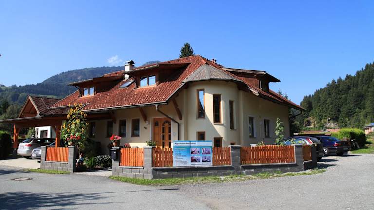 Das Appartementhaus Sabine befindet sich in zentraler und dennoch ruhiger Lage in Kötschach. In der Nähe finden Sie das Wellnesscenter Aquarena mit verschiedenen Pools und einer Sauna, das Sie in nur 10 Minuten zu Fuß erreichen können. Die Apartments bieten einen herrlichen Blick auf die Berge und sind ein idealer Ausgangspunkt für Wanderungen und Ausflüge in die Umgebung. Die Skilifte sind nur 10 Gehminuten entfernt und die Bushaltestelle erreichen Sie zu Fuß in 1 Minute.
