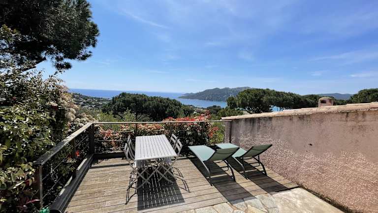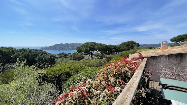 • Schöne Aussicht von der Terrasse auf die Bucht von Santa Giulia.