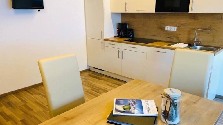 Im Santerhof können Sie Ihre eigenen Mahlzeiten zubereiten, da jedes Apartment über eine voll ausgestattete Küche verfügt. Wenn Sie jedoch keine Lust zum Kochen haben, können Sie das Restaurant mit Pizzeria, das nur 250 m entfernt ist, besuchen. Alternativ finden Sie auch einen Supermarkt in der Nähe, in dem Sie alle Zutaten für Ihre Mahlzeiten einkaufen können.