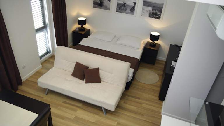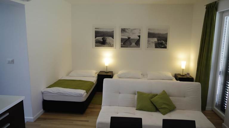 Die Apartments Santis10 befinden sich in Baška, einer malerischen Küstenstadt auf der Insel Krk in Kroatien. Die Lage der Unterkunft ist ideal, da sie nur 600 m von der Kirche Sveti Marko entfernt ist. Der Strand Plaža Vela liegt ebenfalls in der Nähe und ist nur 700 m entfernt. In der Umgebung finden Sie auch verschiedene Restaurants, Bars und Geschäfte. Der Busbahnhof Baška ist bequem zu Fuß erreichbar und bietet eine gute Anbindung an die umliegenden Städte und Sehenswürdigkeiten. Der Flughafen Rijeka ist etwa 31 km entfernt und kann von der Unterkunft aus leicht erreicht werden.
