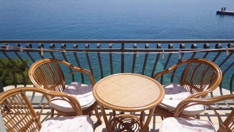 Die Apartments Santo bieten komfortable und moderne Unterkünfte mit klimatisierten Apartments zur Selbstverpflegung. Jedes Apartment verfügt über einen Balkon mit Meerblick, wo Sie die spektakuläre Aussicht genießen können. Die Apartments sind mit Massivholzböden, Sat-TV und einer voll ausgestatteten Küche mit Essbereich ausgestattet. Ein eigenes Bad ist ebenfalls vorhanden. Zusätzliche Annehmlichkeiten wie ein Geschirrspüler und eine Waschmaschine sorgen für einen angenehmen Aufenthalt.