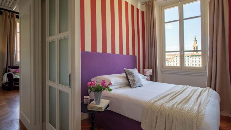 Die Serristori Palace Residence liegt am Ufer des Flusses Arno und bietet Ihnen einen herrlichen Blick auf das historische Zentrum von Florenz. Sie können die berühmte Ponte Vecchio nach einem kurzen Spaziergang entlang des Flusses erreichen. Die Lage des Hotels ist ideal, da es sich in der Nähe vieler Sehenswürdigkeiten befindet, darunter die Piazzale Michelangelo und der Palazzo Pitti.