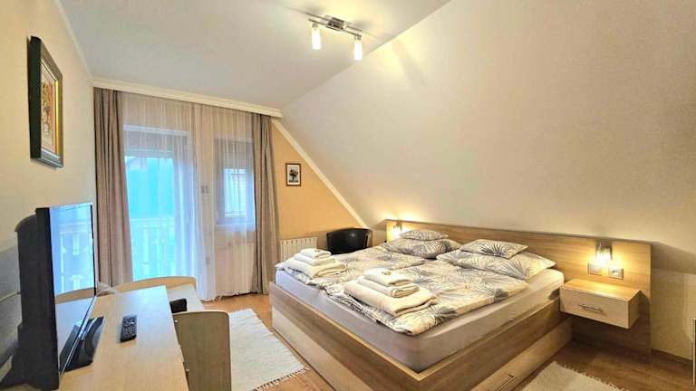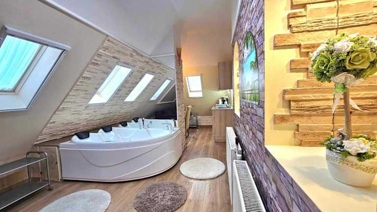 Das Apartman Siesta Bük bietet eine Vielzahl von Freizeitmöglichkeiten für seine Gäste. Entspannen Sie im Whirlpool oder in der Sauna und genießen Sie die Ruhe und Erholung. Im Garten des Hotels finden Sie einen Grillplatz und einen Kinderspielplatz. Ein kostenloser Fahrradverleih steht Ihnen ebenfalls zur Verfügung, um die Umgebung zu erkunden. Ein Golfplatz ist nur 3 km entfernt, falls Sie eine Runde Golf spielen möchten.