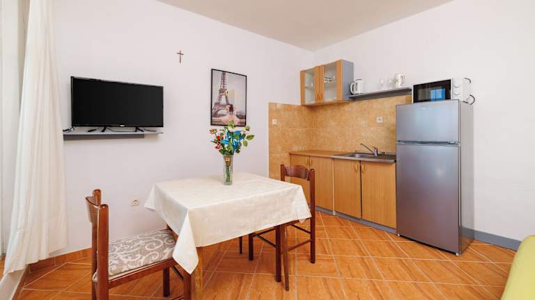 Das Apartments Slavica bietet Selbstversorger-Apartments, in denen Sie Ihre eigenen Mahlzeiten zubereiten können. In der Küche finden Sie alles, was Sie dazu benötigen. Wenn Sie jedoch lieber auswärts essen möchten, gibt es in der Nähe verschiedene Restaurants und Cafés, in denen Sie lokale Spezialitäten und internationale Gerichte probieren können.