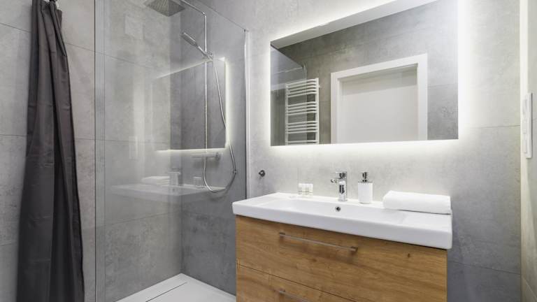 Die Ferienwohnung umfasst ein Schlafzimmer, ein Wohnzimmer und eine voll ausgestattete Küchenzeile mit Kühlschrank und Kaffeemaschine. Zu den weiteren Ausstattungsmerkmalen zählen ein Badezimmer mit Dusche und kostenlosen Pflegeprodukten sowie Handtücher und Bettwäsche.
