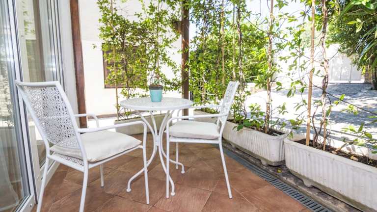 Die klimatisierten Apartments Terra bieten komfortable Unterkünfte mit einem Balkon, der einen herrlichen Blick auf den Garten bietet. Die Apartments verfügen über einen gemütlichen Sitzbereich, einen Flachbild-Sat-TV und kostenfreies WLAN. Eine voll ausgestattete Küche mit Kühlschrank und Kochfeld ermöglicht es Ihnen, Ihre eigenen Mahlzeiten zuzubereiten. Das private Badezimmer ist mit einer Dusche und einem Haartrockner ausgestattet.