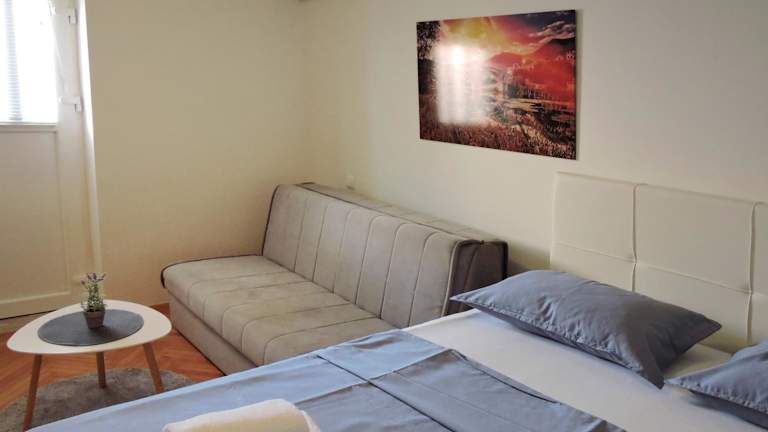 Die Apartments Tila befinden sich in einer ruhigen Umgebung, etwa 31 km vom Einkaufszentrum Sub City entfernt. Die Lage bietet eine entspannte Atmosphäre, während Sie dennoch in der Nähe von Einkaufsmöglichkeiten sind. Für kulturelle Besichtigungen können Sie die Orlando-Säule und den Onofrio-Brunnen besuchen, die jeweils etwa 32 km entfernt liegen. Der Flughafen Dubrovnik ist nur 45 km entfernt und bietet eine bequeme Anreisemöglichkeit.