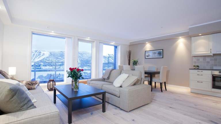 Die Apartments im Ustedalen Resort Leiligheter sind modern und hell eingerichtet. Sie verfügen über eine voll ausgestattete Küche, in der Sie Ihre eigenen Mahlzeiten zubereiten können. Jedes Apartment hat einen gemütlichen Sitzbereich, einen Flachbild-TV und ein komplett gefliestes Badezimmer mit Dusche. Die Apartments bieten entweder einen Blick auf das Skizentrum oder den Ustedalsfjord, so dass Sie die spektakuläre Umgebung genießen können. Kostenfreie Parkplätze stehen den Gästen zur Verfügung.