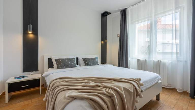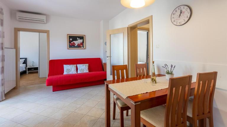 Die Apartments Vesna in Malinska auf der Insel Krk bieten Ihnen eine komfortable Unterkunft in der Nähe der beliebten Strände Rova und Malin. Die klimatisierten Apartments verfügen über alle Annehmlichkeiten, die Sie für einen angenehmen Aufenthalt benötigen, einschließlich kostenfreiem WLAN und Parkplätzen. Die Küchenzeile ermöglicht es Ihnen, Ihre eigenen Mahlzeiten zuzubereiten, und der Balkon bietet einen schönen Ort zum Entspannen. Die Lage des Apartments ist ideal, um die Sehenswürdigkeiten von Malinska zu erkunden, darunter der Strand Draga und der Busbahnhof.