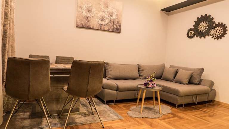 Die Villa Domina liegt nur wenige Gehminuten vom UNESCO-geschützten Palast des Diokletian entfernt, einem der bekanntesten Wahrzeichen von Split. Die Lage ist ideal, um die Altstadt von Split zu erkunden und die historischen Sehenswürdigkeiten zu besichtigen. Der Strand Bačvice ist ebenfalls zu Fuß erreichbar und bietet die perfekte Gelegenheit zum Entspannen und Sonnenbaden. In der Umgebung gibt es zahlreiche Restaurants, Bars, Geschäfte und Galerien, die zum Bummeln und Genießen einladen. Der Waldpark Marjan ist ein beliebtes Ausflugsziel für Wanderungen und Outdoor-Aktivitäten und bietet einen atemberaubenden Blick auf die Stadt und das Meer. Der Busbahnhof, der Hauptbahnhof und der Fährhafen von Split sind ebenfalls in der Nähe und bieten gute Verbindungen zu den umliegenden Inseln und zum Flughafen.