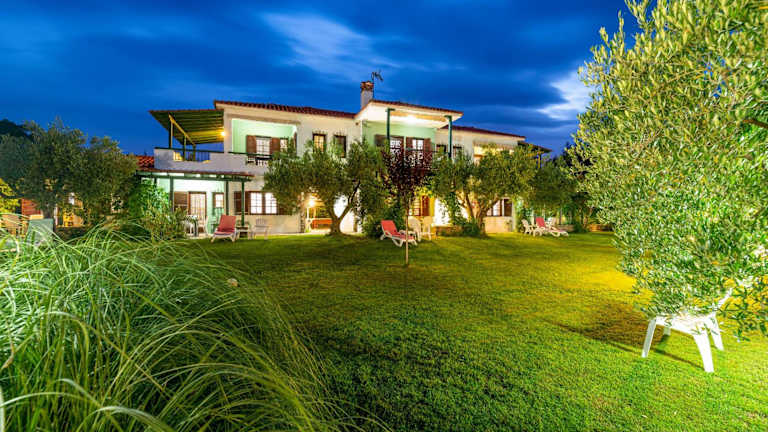 Die Villa Hrisavgi befindet sich in Nikiti in der Region Mazedonien. Der Strand Paralia Kosma Pigadi ist in einer Entfernung von 2,3 km erreichbar. Der nächstgelegene Flughafen, der Flughafen Thessaloniki, liegt 86 km von der Unterkunft entfernt.