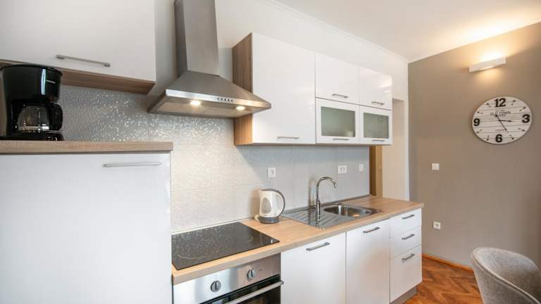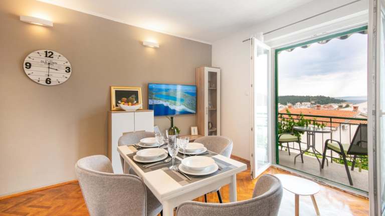Apartmani Luce bietet klimatisierte Apartments mit kostenfreiem WLAN, Küchenzubehör und Panoramablick auf die Adria. Es handelt sich um eine privat geführte Unterkunft, die über verschiedene Annehmlichkeiten verfügt. Die Anlage ist eine Nichtraucherunterkunft und gewährt den Gästen Zugang zu einer Gemeinschaftsterrasse oder einem Balkon in den jeweiligen Apartments. Haushaltsdienste wie Reinigung sind gegen Gebühr verfügbar, es gibt jedoch auch Optionen für die Selbstversorgung.