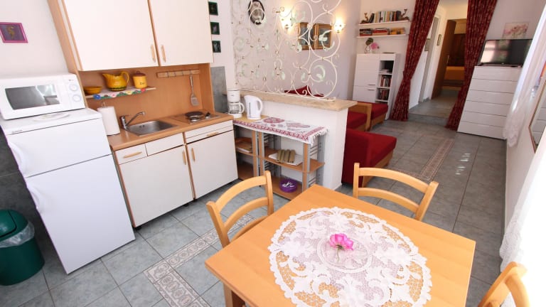 Die Apartments Villa Lucu in Rovinj bieten komfortable und klimatisierte Unterkünfte in einer ruhigen Lage, nur 400 m vom Stadtzentrum entfernt. Mit kostenlosem WLAN, kostenfreien Parkplätzen und einem schönen Garten mit Terrasse und Grillplatz ist diese Unterkunft ideal für einen entspannten Urlaub. Die Apartments verfügen über eine voll ausgestattete Küche und eine Terrasse, auf der Sie gemütlich sitzen können. Verschiedene Restaurants, Bars und Geschäfte sind nur 200 m entfernt. Der Strand Porton Biondi ist ebenfalls in der Nähe.