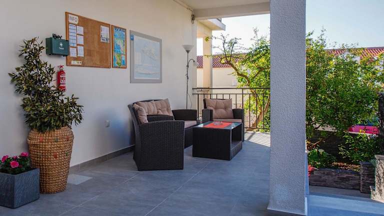 Die Apartments Viskovic verfügen über einen schönen Garten, in dem Sie sich entspannen und die Natur genießen können. Die Gemeinschaftsterrasse bietet Grillmöglichkeiten, so dass Sie Ihre eigenen Mahlzeiten im Freien zubereiten können. Der Strand ist nur 5 Gehminuten entfernt, ideal für Sonnenanbeter und Wassersportbegeisterte. Nutzen Sie die Gelegenheit, die wunderschöne Adriaküste zu erkunden und verschiedene Aktivitäten im Wasser zu genießen.