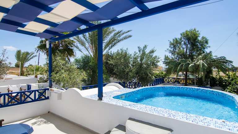 Das Hotel White & Blue in Perivolos bietet Ihnen eine ideale Unterkunft, nur einen kurzen Spaziergang vom schwarzen Sandstrand entfernt. Hier erwarten Sie traditionell eingerichtete Apartments im Stil der Kykladen mit Tauchbecken oder Whirlpool und einem herrlichen Blick auf die Ägäis. Genießen Sie die Nähe zu Strandbars und Restaurants und erkunden Sie die Umgebung. Die Apartments sind einfach, aber gemütlich und verfügen über eine Terrasse oder einen Balkon. In der Küchenzeile finden Sie alles, was Sie für Ihren Aufenthalt benötigen. Eine Bushaltestelle und ein Supermarkt befinden sich in der Nähe, und der Flughafen Santorini ist gut erreichbar. Kostenlose Parkplätze stehen Ihnen zur Verfügung.