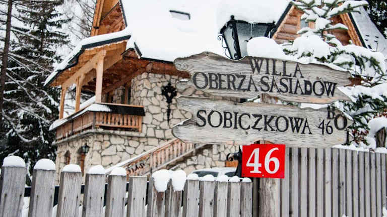 Das Rezydencja Sąsiadów Zakopanego ist eine charmante Villa im alpinen Stil, die Ihnen einen angenehmen Aufenthalt in Zakopane bietet. Die Zimmer sind gemütlich eingerichtet und verfügen über kostenfreies WLAN und ein eigenes Bad. Die ruhige Lage der Villa bietet eine herrliche Aussicht auf den Berg Giewont und ist der ideale Ort zum Entspannen. Das freundliche Personal gibt Ihnen gerne Tipps zu Aktivitäten und Sehenswürdigkeiten in Zakopane. Nach einem ereignisreichen Tag können Sie in der kostenfreien Sauna entspannen oder sich im Esszimmer mit Kamin aufwärmen. Kostenlose Parkplätze und eine Skiaufbewahrung stehen Ihnen ebenfalls zur Verfügung.