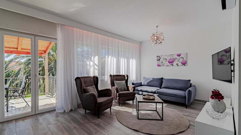 Apartments with parking space Orebic, Peljesac - 646 bietet einen komfortablen Aufenthalt mit kostenlosem WLAN sowie die Möglichkeit, kostenlos einen Privatparkplatz zu nutzen. Die Unterkunft umfasst eine Terrasse und einen Sitzbereich, in dem die Gäste entspannen können.