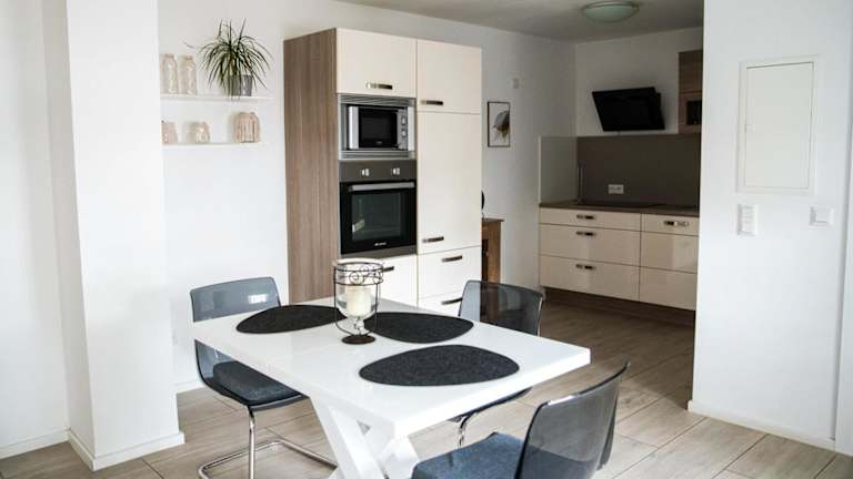 Die Apartments verfügen über eine voll ausgestattete Küche mit Kühlschrank, Geschirrspüler, Herdplatte, Ofen, Toaster, Kaffeemaschine und Wasserkocher, was eine eigenständige Verpflegung ermöglicht.