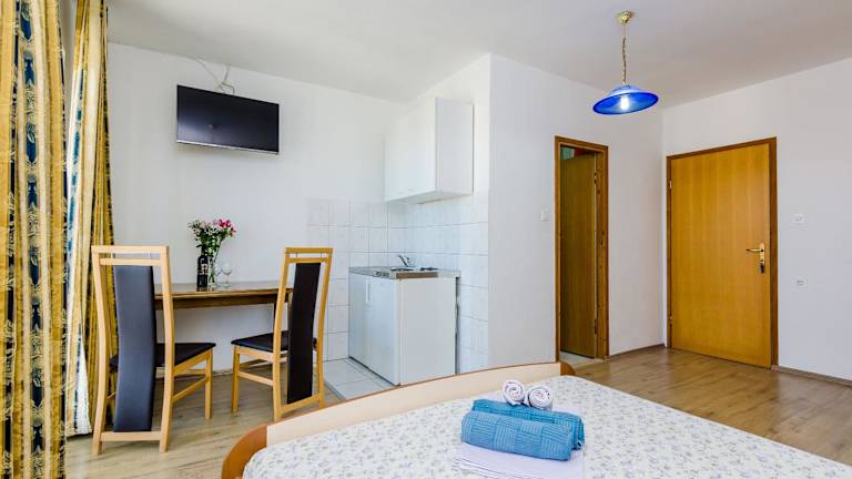 Die Apartments Zrno bieten geräumige und komfortable Unterkünfte mit allem, was Sie für einen angenehmen Aufenthalt benötigen. Jedes Apartment verfügt über einen eigenen Balkon mit Meerblick, auf dem Sie die Aussicht genießen können. Im Inneren finden Sie einen gemütlichen Sitzbereich, einen Flachbild-Sat-TV und eine voll ausgestattete Küche mit einem Kühlschrank und einem Kochfeld. Das private Badezimmer ist mit einer Dusche und einem Haartrockner ausgestattet.