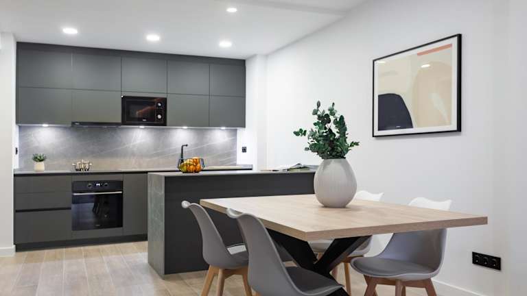Die Apartments verfügen über ein Doppelzimmer, ein individuelles Zimmer mit zwei Betten sowie einen Wohnbereich mit Flachbild-TV. Es sind zwei Badezimmer vorhanden, von denen eines en suite ist. Die Küche ist mit einem Backofen, einem Kochfeld, einer Mikrowelle und einer Kaffeemaschine ausgestattet. Bettwäsche und Handtücher werden bereitgestellt.