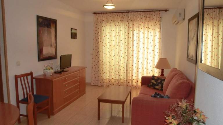 APCOSTAS - Marina Mar 2a Línea bietet Übernachtungsmöglichkeiten in Ferienwohnungen und verfügt über einen saisonalen Außenpool, einen Garten sowie eine Terrasse. Die Unterkunft bietet kostenloses WLAN und einen Balkon.
