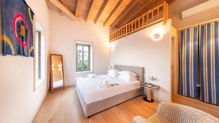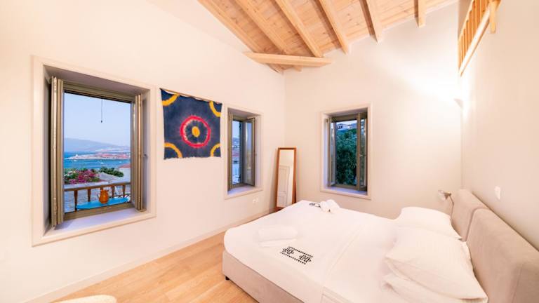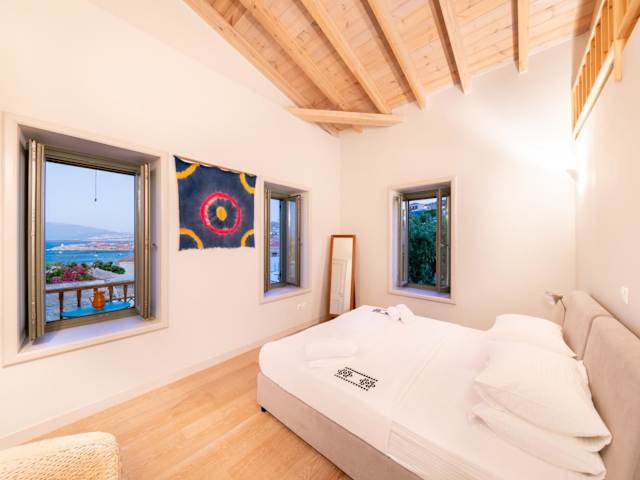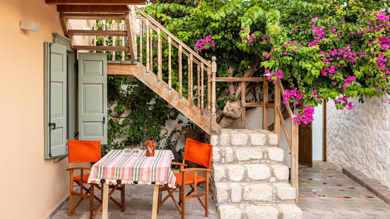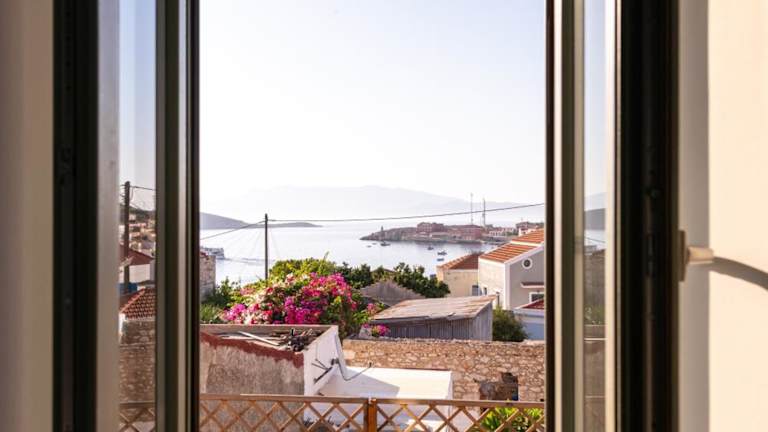 Aphrodite Villas Halki - Villa Bougainvillea bietet Übernachtungsmöglichkeiten in Form eines Ferienhauses mit Balkon und kostenlosem WLAN. Die Unterkunft besticht durch eine angenehme Atmosphäre und hat einen Blick in die Umgebung.