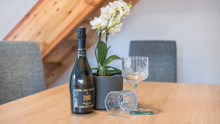 Die Unterkunft beinhaltet eine voll ausgestattete Küche mit Kühlschrank und Kaffeemaschine, jedoch sind keine Informationen über weitere Verpflegungsmöglichkeiten vorhanden.