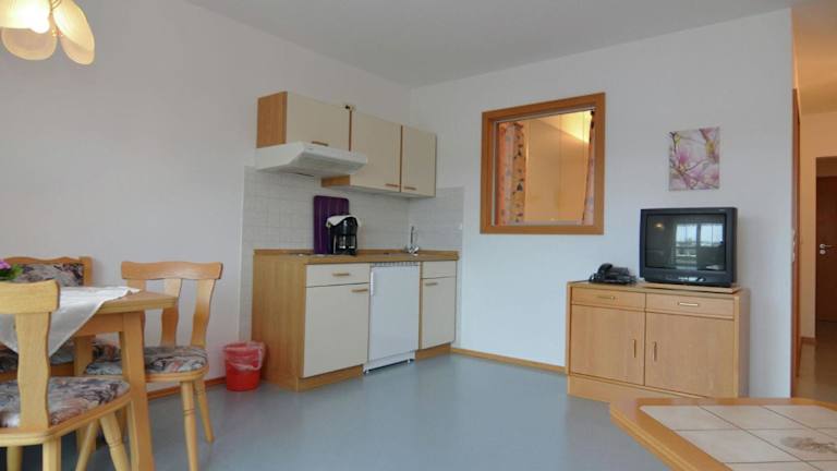 Die Ferienwohnung verfügt über 1 Schlafzimmer, ein Wohnzimmer, einen TV sowie eine gut ausgestattete Küche mit Kühlschrank und Herdplatte. Des Weiteren gibt es 1 Badezimmer mit Dusche. Handtücher und Bettwäsche werden bereitgestellt.