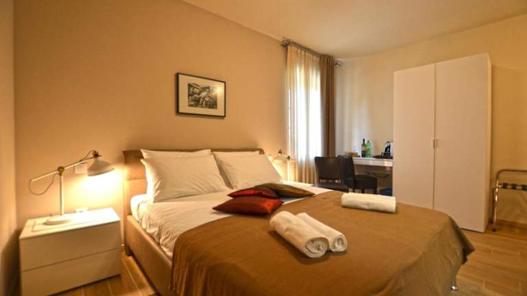Das Apartment Fioretti verfügt über 2 Schlafzimmer und 1 Badezimmer mit einer Badewanne oder Dusche. Das Apartment ist geschmackvoll eingerichtet und bietet einen gemütlichen Aufenthaltsbereich mit einem Flachbild-Sat-TV. Die voll ausgestattete Küche ermöglicht es Ihnen, Ihre eigenen Mahlzeiten zuzubereiten und die Terrasse bietet einen schönen Blick auf den Garten.