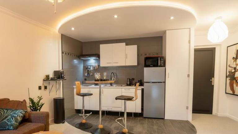 Die Grande Suite chalereuse au coeur de Tullins verfügt über ein gemütliches Schlafzimmer mit allen Annehmlichkeiten, die Sie für einen komfortablen Aufenthalt benötigen. Das Apartment bietet zudem einen Flachbild-Sat-TV und eine voll ausgestattete Küche mit einem Kühlschrank und einer Mikrowelle. Das Badezimmer ist mit einer Dusche ausgestattet und Handtücher und Bettwäsche werden gestellt, um Ihnen den Aufenthalt so angenehm wie möglich zu gestalten.