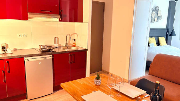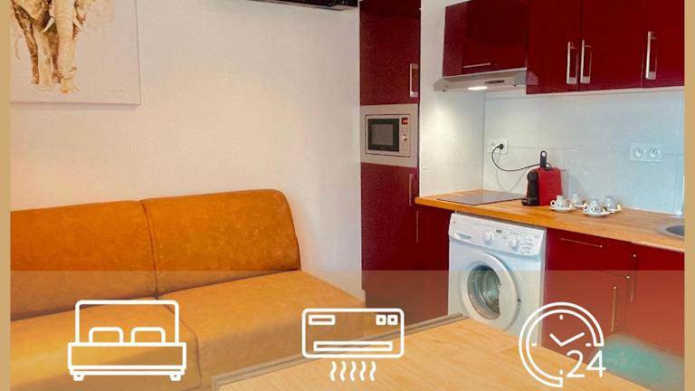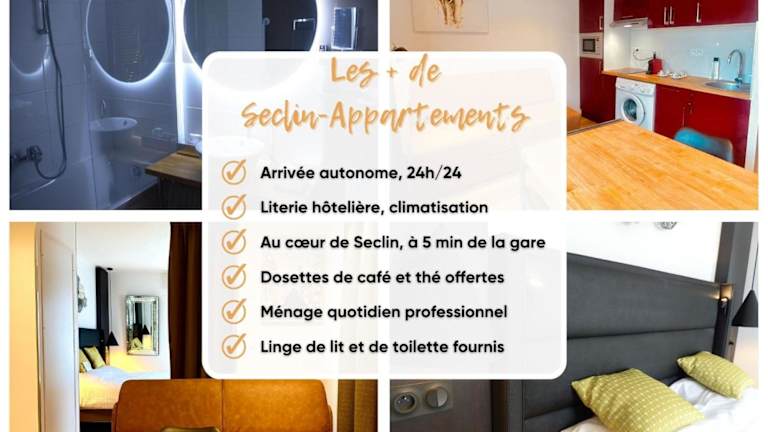 Appart'hôtel - Seclin-Appartements bietet Übernachtungsmöglichkeiten in Form von Wohneinheiten, ausgestattet mit Klimaanlage und kostenlosem WLAN. Jede Einheit verfügt über ein Schlafsofa, einen Sitzbereich und einen Flachbild-TV. Zudem stehen eine gut ausgestattete Küche und ein eigenes Badezimmer zur Verfügung. Die Unterkunft wird von einem privaten Gastgeber geführt und ist Nichtraucherzone.