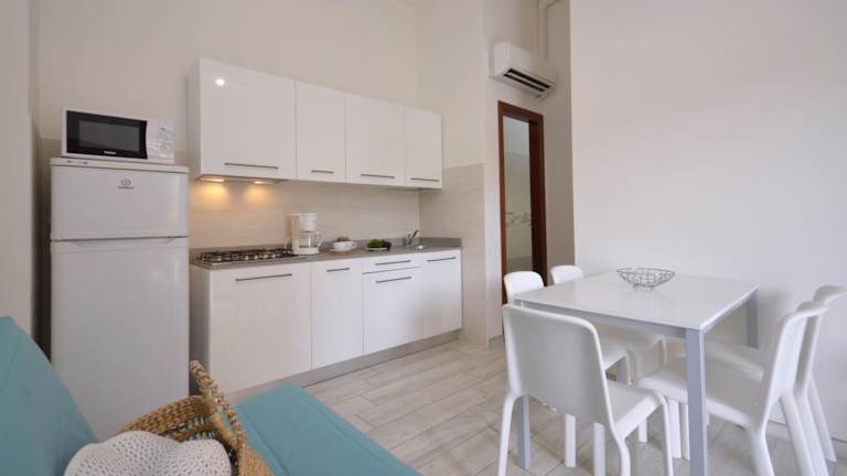 Die Appartamenti sind mit einer voll ausgestatteten Küchenzeile ausgestattet, die Kühlschrank und Kaffeemaschine umfasst. Jede Einheit hat zudem einen Fernseher und ein eigenes Badezimmer mit Bidet und Dusche. Alle Wohneinheiten sind klimatisiert und bieten Sitz- und/oder Essbereiche.
