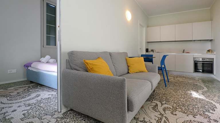 Die Ferienwohnung umfasst 1 Schlafzimmer, ein Wohnzimmer und eine voll ausgestattete Küche mit Kühlschrank und Kaffeemaschine. Ein Badezimmer mit Dusche und kostenlosen Pflegeprodukten sowie die Bereitstellung von Handtüchern und Bettwäsche sind ebenfalls vorhanden.