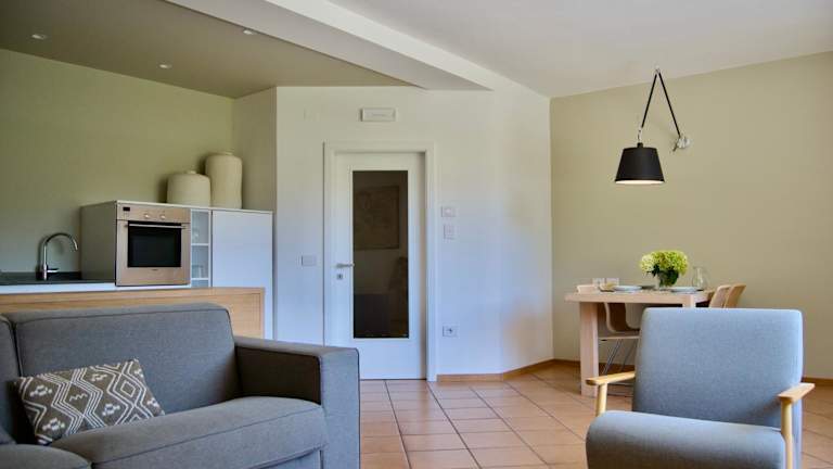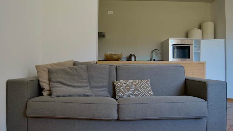 Die Ferienwohnung umfasst ein Schlafzimmer, ein Wohnzimmer mit einem Flachbild-TV sowie eine voll ausgestattete Küche mit Kühlschrank und Geschirrspüler. Es gibt ein Badezimmer mit Bidet. Optional können Bettwäsche und Handtücher gegen Aufpreis bereitgestellt werden.
