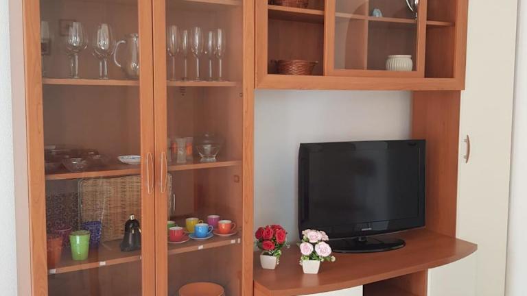 Die Ferienwohnung besteht aus zwei Schlafzimmern und einem Wohnzimmer. Eine voll ausgestattete Küche mit Kühlschrank und Kaffeemaschine steht zur Verfügung. Es gibt ein Badezimmer mit Bidet und Dusche. Handtücher und Bettwäsche werden bereitgestellt.