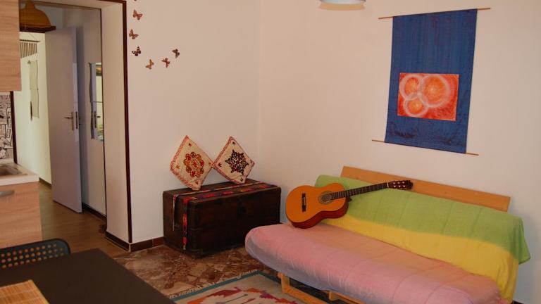 Die Ferienwohnung besteht aus einem Schlafzimmer und einem Wohnzimmer, ergänzt durch eine voll ausgestattete Küche mit Kühlschrank und Kaffeemaschine. Das Badezimmer ist mit einem Bidet und einer Dusche ausgestattet. Diese Unterkunft bietet zudem Annehmlichkeiten wie Klimaanlage, Heizung und kostenfreies WLAN.