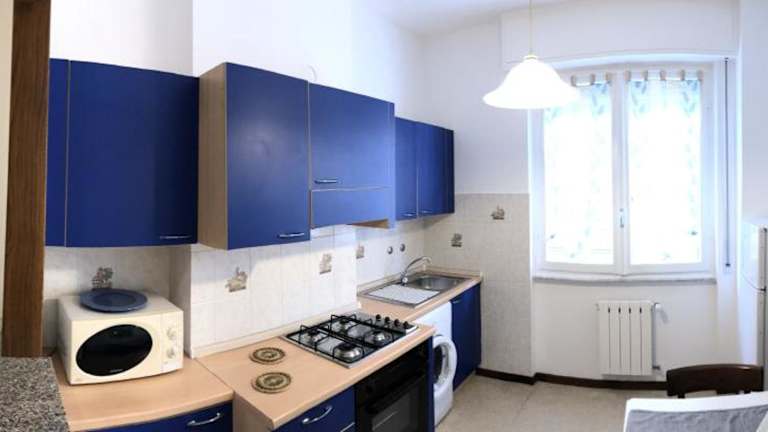 Die Unterkunft Appartamento Quadrilocale bietet kostenloses WLAN und einen eigenen Strandbereich. Die Ferienwohnung ist klimatisiert und besteht aus 2 separaten Schlafzimmern, einem Wohnzimmer und einer voll ausgestatteten Küche.