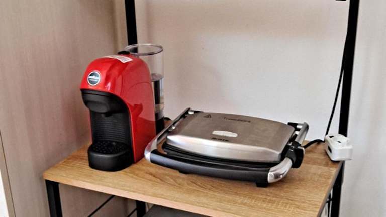 Die Unterkunft verfügt über eine voll ausgestattete Küche mit Kühlschrank, Ofen, Mikrowelle, Kaffeemaschine und Wasserkocher, die die Zubereitung von Mahlzeiten ermöglicht.