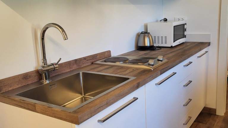 Die Ferienwohnung umfasst ein Schlafzimmer, ein Wohnzimmer sowie eine voll ausgestattete Küche mit Kühlschrank und Wasserkocher. Des Weiteren gibt es ein Badezimmer mit Bidet und Dusche. Handtücher und Bettwäsche sind gegen Aufpreis verfügbar.