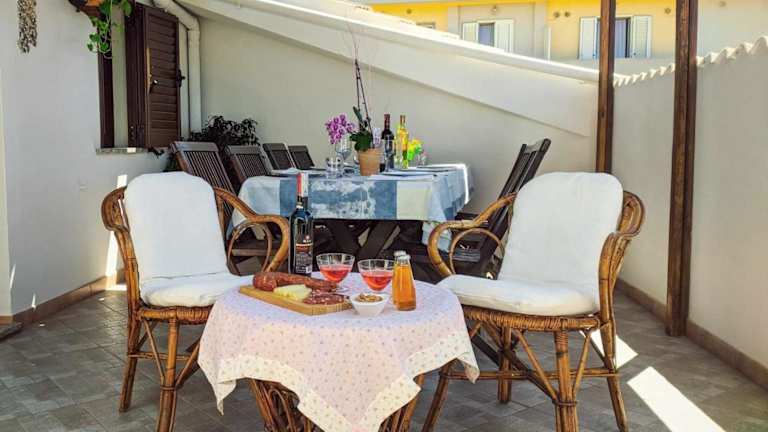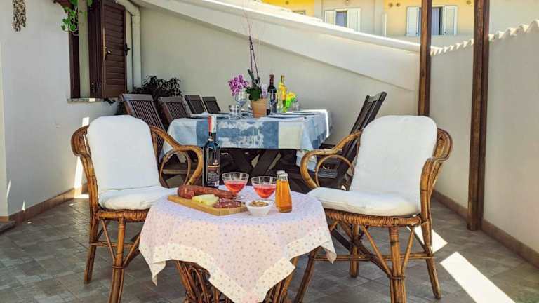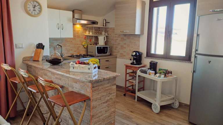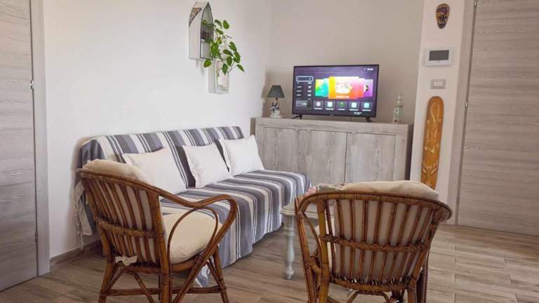 Das Appartamento vicino spiaggia di Maria Pia ist eine Unterkunft direkt am Strand und bietet einen Balkon sowie eine Terrasse mit Gartenblick. Die Unterkunft verfügt über kostenloses WLAN, Klimaanlage und eine Bar.