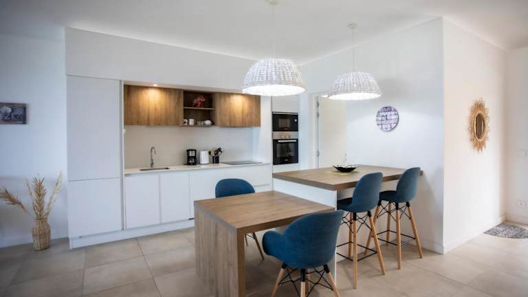 Die Wohnung besteht aus 2 Schlafzimmern, einem Wohnzimmer, einer voll ausgestatteten Küche mit Kühlschrank und Kaffeemaschine sowie 2 Badezimmern mit einer Dusche. Kostenloses WLAN und Meerblick stehen zur Verfügung. Handtücher und Bettwäsche werden bereitgestellt.