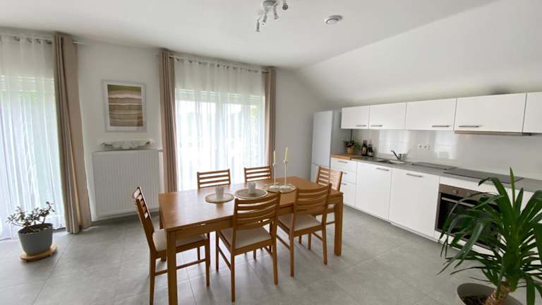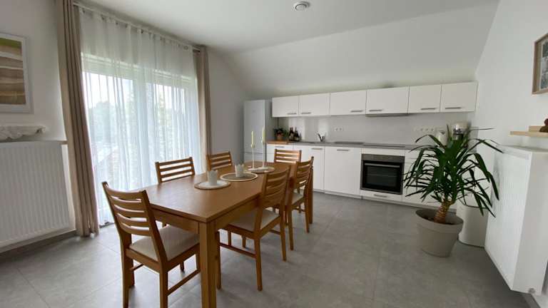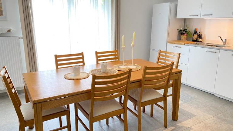 Die Unterkunft besteht aus zwei separaten Schlafzimmern, einem Wohnzimmer und einer voll ausgestatteten Küche, die unter anderem mit einer Mikrowelle ausgestattet ist. Es gibt ein Badezimmer zur Verfügung.