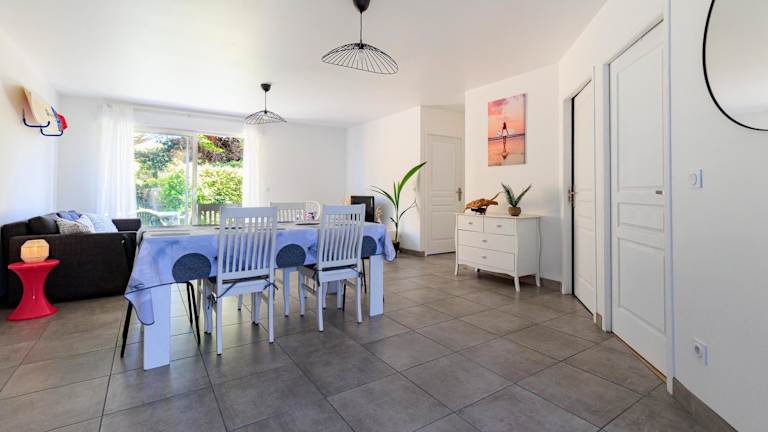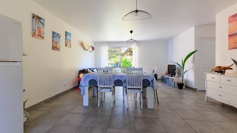 Appartement 6 Personnes Soustons bietet eine Unterkunft für bis zu sechs Personen in einer ruhigen Lage mit einem Garten und einer Terrasse, von der aus Gäste einen Blick ins Grüne genießen können. Die Unterkunft ist darauf ausgelegt, für längere Aufenthalte Komfort und Bequemlichkeit zu bieten und hat eine Nichtraucherpolitik in allen öffentlichen und privaten Bereichen. Für Gäste, die mit dem Auto anreisen, stehen kostenlose Parkmöglichkeiten zur Verfügung. Die Unterkunft ist zudem rollstuhlgerecht und für Gäste mit besonderen Bedürfnissen geeignet. Außerhalb des Hauses stehen Gartenmöbel zur Verfügung.