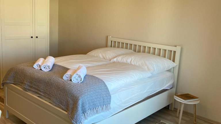 Die Ferienwohnung umfasst 3 Schlafzimmer, ein Wohnzimmer, einen Satelliten Flachbild-TV und eine gut ausgestattete Küche. Des Weiteren stehen ein Badezimmer mit Dusche und Badewanne zur Verfügung. Handtücher und Bettwäsche werden bereitgestellt.
